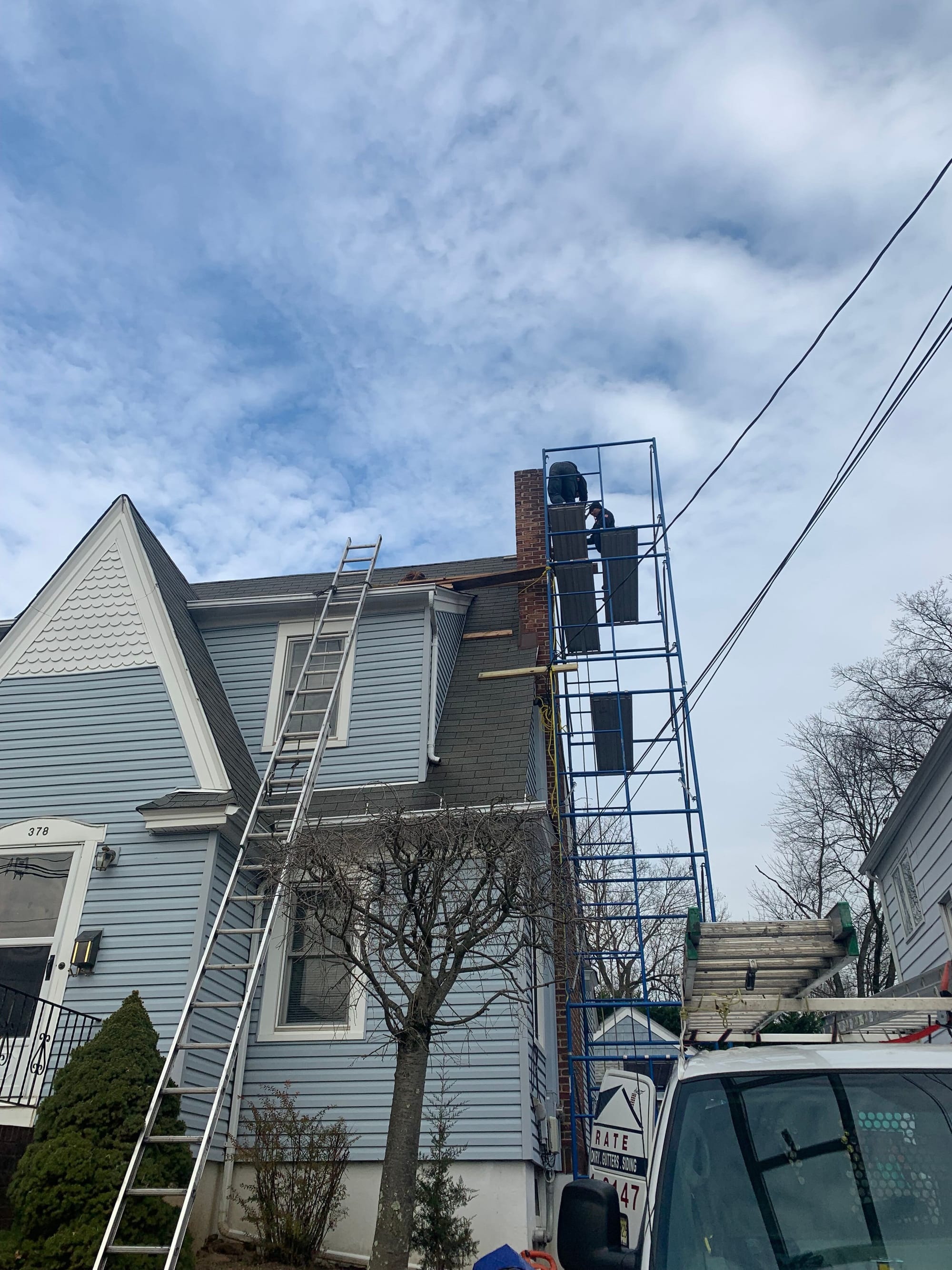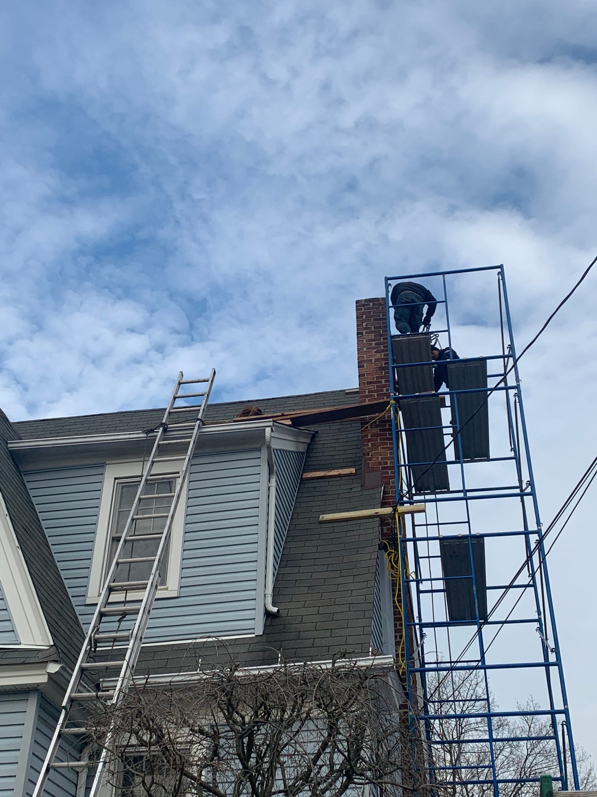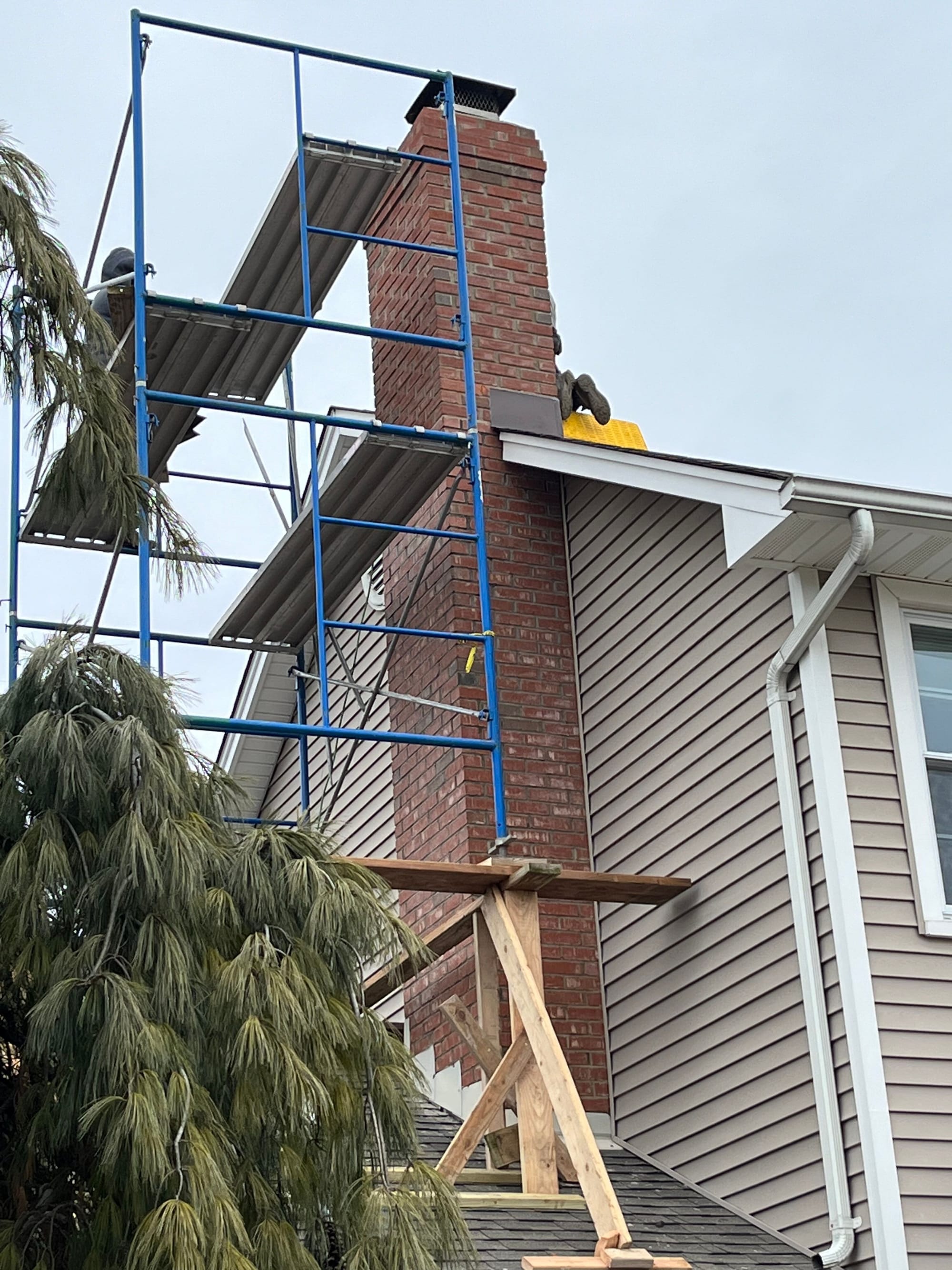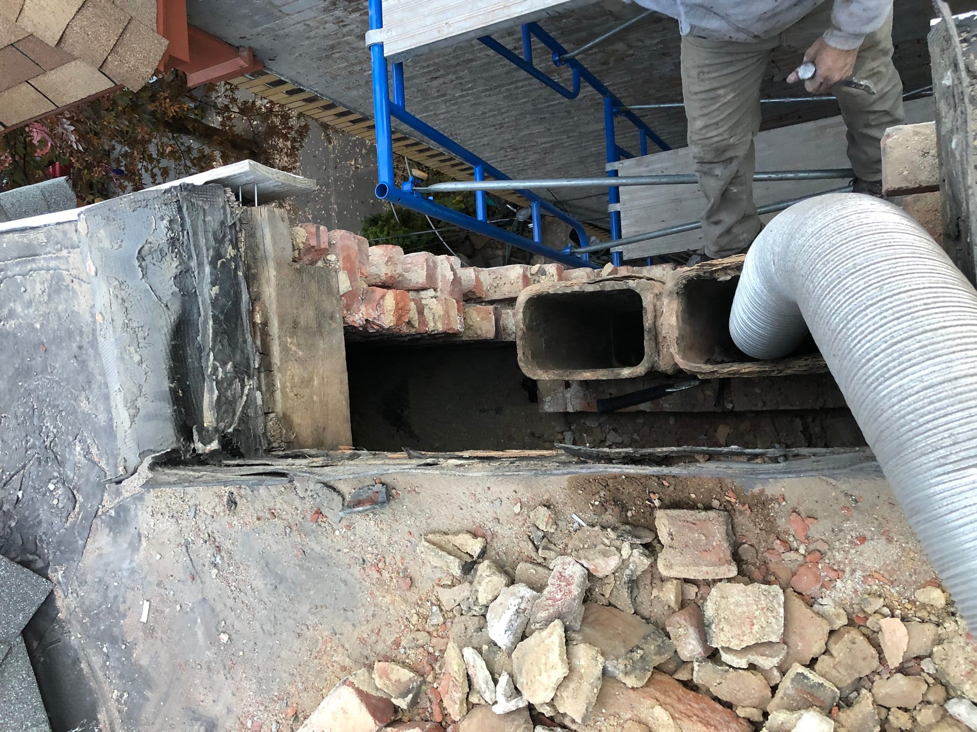 Chimney repair in process